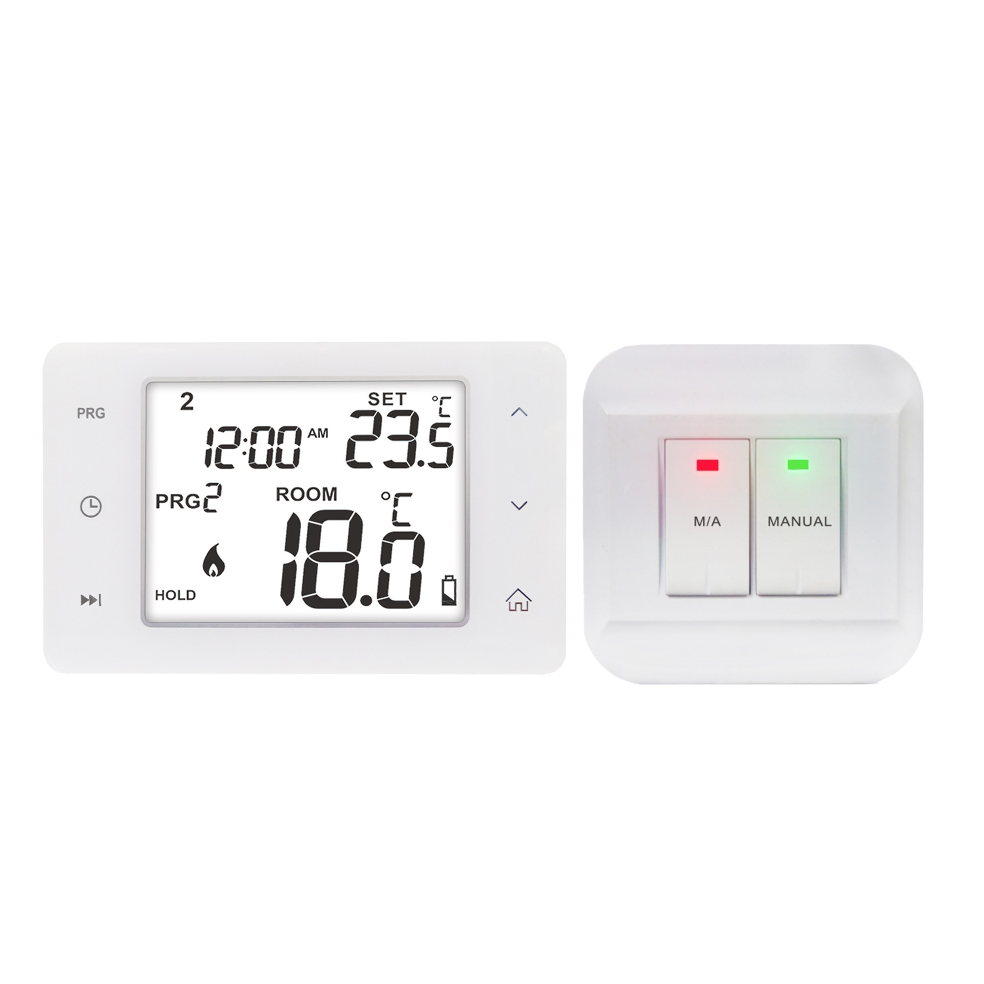 ST2701RF เป็นเทอร์มอสเตตห้องไร้สายที่มีจอ LCD ซึ่งถูกออกแบบให้กับระบบทําความร้อนด้วยไฟฟ้า/น้ํา มีการตั้งค่าเปิด/ปิดแบบโปรแกรมง่าย 7 วันทุกวันคุณสามารถตั้งอุณหภูมิที่คุณต้องการในระบบ.