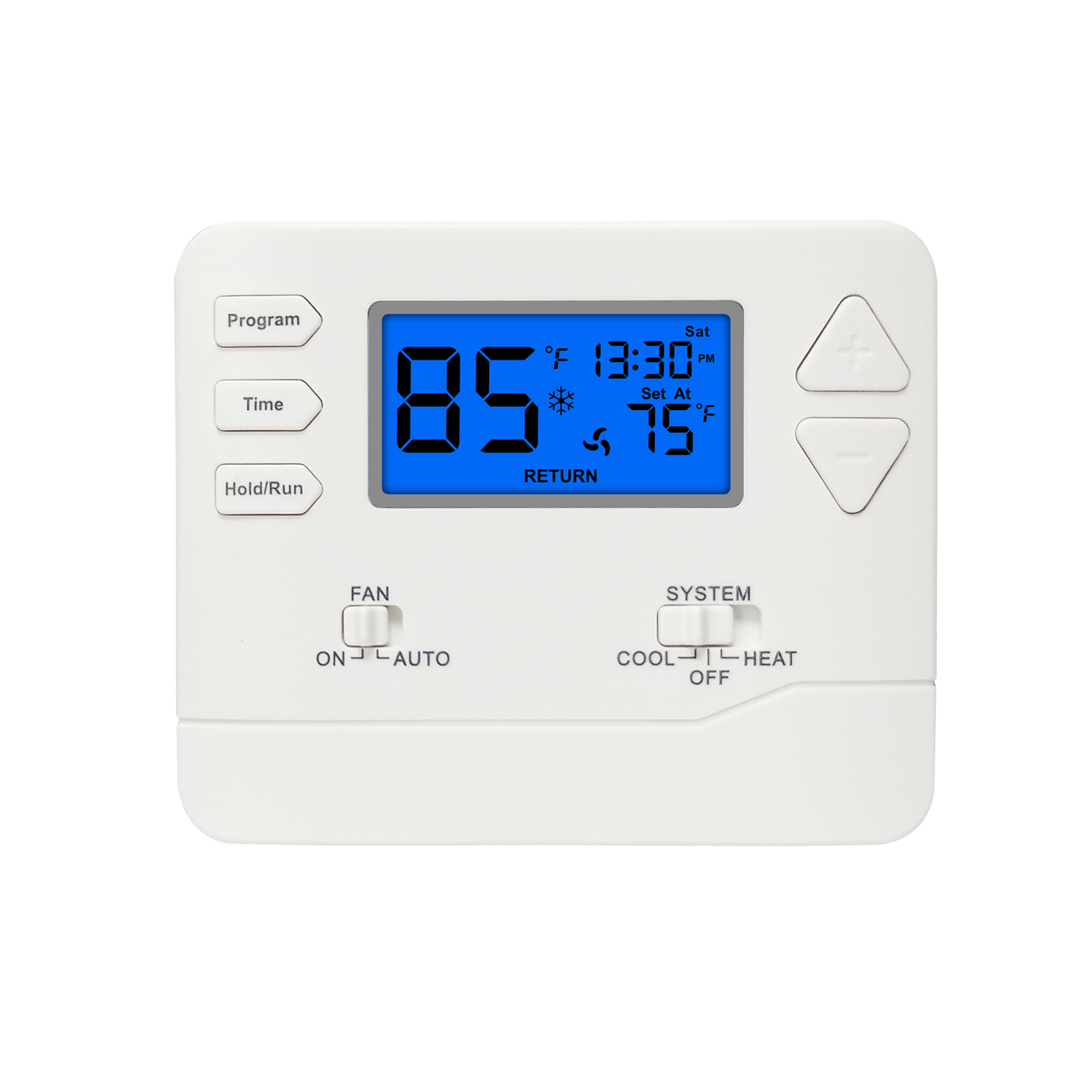 HVAC Thermostat เป็นเทอร์โมสตัทในห้องที่จำเป็น ซึ่งออกแบบมาเพื่อควบคุมระบบทำความร้อนและความเย็นในบ้านหรือสำนักงานของคุณได้อย่างมีประสิทธิภาพ เทอร์โมสตัทดิจิทัลนี้มีการควบคุมอุณหภูมิที่แม่นยำ โดยมีความแม่นยำในการแสดงผล ±1℉ เมื่ออุณหภูมิต่ำกว่า 68℉ เพื่อให้มั่นใจถึงสภาพแวดล้อมที่สะดวกสบายตลอดเวลา
