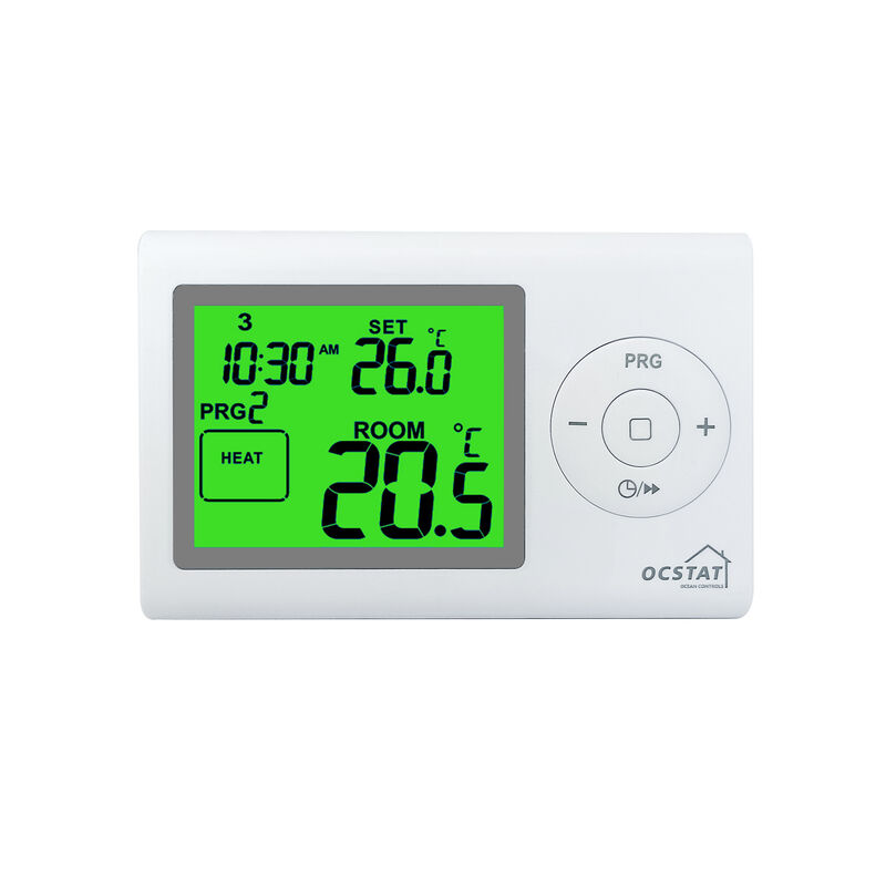 เทอร์โมสตัท RF OCSTAT ST2402RF 230V เป็นเทอร์โมสตัท HVAC ขั้นสูงที่ออกแบบมาเพื่อให้การควบคุมอุณหภูมิที่แม่นยำและประสิทธิภาพการใช้พลังงานในสภาพแวดล้อมต่างๆ ผลิตในประเทศจีนพร้อมใบรับรอง CE และ ROHS เทอร์โมสตัทห้องดิจิทัลนี้รับประกันความปลอดภัยและความน่าเชื่อถือผ่านโครงสร้างวัสดุ ABS+PC ป้องกันการติดไฟ คุณสมบัติที่ตั้งโปรแกรมได้ 7 วันช่วยให้ผู้ใช้สามารถปรับแต่งตารางการทำความร้อนตามกิจวัตรประจำวัน ทำให้เป็นโซลูชันที่เหมาะสำหรับการใช้งานทั้งที่อยู่อาศัยและเชิงพาณิชย์